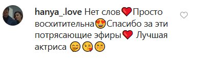 «Очень красивая! спасибо за эфиры ты такая милая хорошая», «Нет слов. Просто восхитительна. Спасибо за эти потрясающие эфиры. Лучшая актриса», «Такие фото выглядят как глоток свежего воздуха связи с карантином)))», «Очень любим тебя, талантливая и красивая! Обожаем тебя в роли Жени в Сватах», — пишут люди.