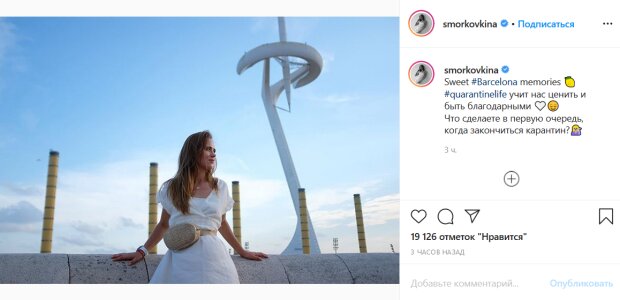 «Приятные воспоминания о Барселоне. Жизнь в карантине учит нас ценить и быть благодарными. Что сделаете в первую очередь, когда закончиться карантин?», — поинтересовалась у своих подписчиков Кошмал.