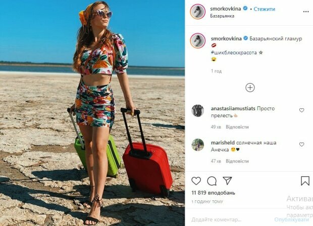 Ранее мы писали, что Анна Кошмал поделилась ярким фото с отдыха. Красотка приехала в курортный городок в Одесской области Базарьянка. Она была одета в цветастый костюм, бандану и солнцезащитные очки. В руках Анна держала два больших чемодана с одеждой.