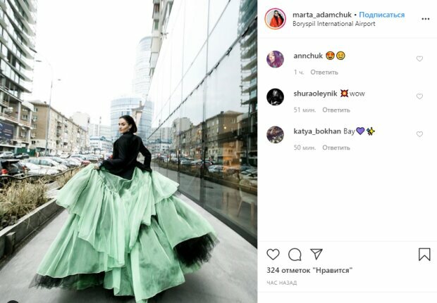 Ранее мы сообщали, Марта покорила публику, выставив фото, на котором предстала в сказочном наряде, как у принцессы. Красотка позировала прямо на улице, скорее всего, сильно удивив прохожих, в платье зеленого оттенка с пышной юбкой. Марта стояла к объективу спиной, посмотрев в камеру через плечо. Девушка двумя руками держала необъятную юбку и как бы застыла в шаге.
