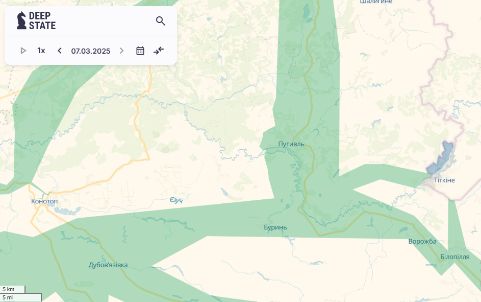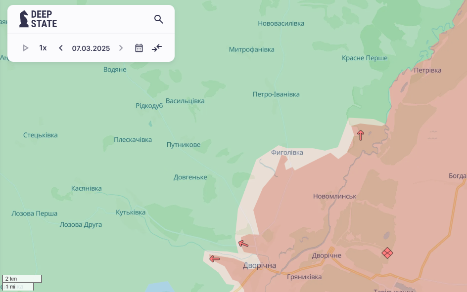 За сутки российская армия имела успехи на нескольких направлениях, в частности в Купянском районе Харьковской области, а также в Суджанском районе Курской области РФ. В то же время украинские военные имели успехи в Сумской области, где враг пытается прорвать приграничье и ликвидировать логистику ВСУ, пролегающую отсюда к позициям украинских военных на территории Курской области. Об изменениях на линии фронта рассказали аналитики проекта DeepState в своей сводке ночью 7 марта.